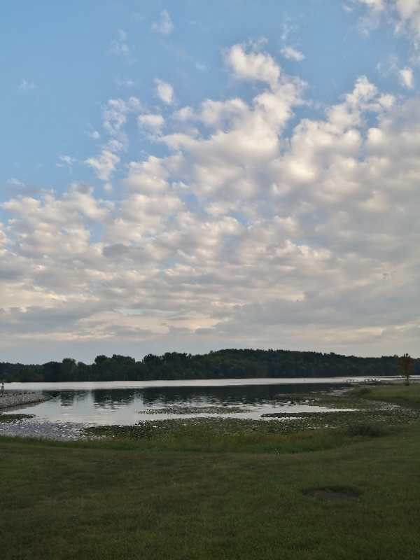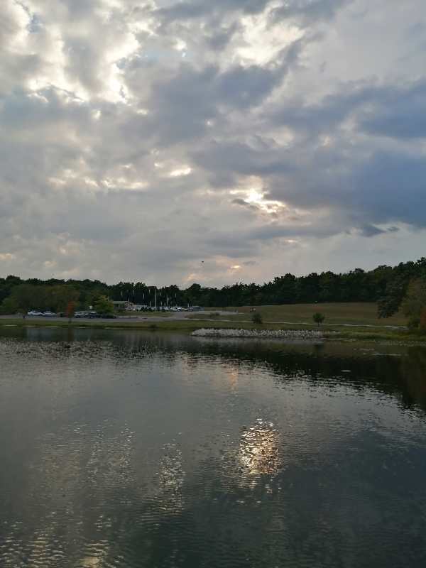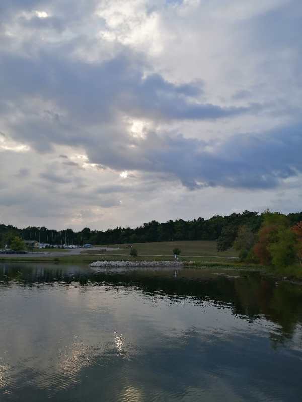 刚买下这边房子的时候,某人就带我去了附近这片有林子有水面的风景区,两人都很激动。因为都喜欢水,喜欢大自然,而这里尤其视野开阔,风景醉人,且近在咫尺。我们想象着秋天的时候,落叶🍂缤纷,色彩肯定迷人;还想象着买只小船,在水上划桨,看夕阳看波光粼粼……