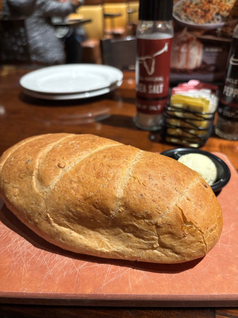 这天晚上依照之前的约定,外出LongHorn Steakhouse晚餐,我请的客,总共89大洋左右。不太菲,但是值得,在这样的时候。我们都很喜欢这家的菜,还打包带回家,然后第二天都被队友消灭光了。我很欣慰。